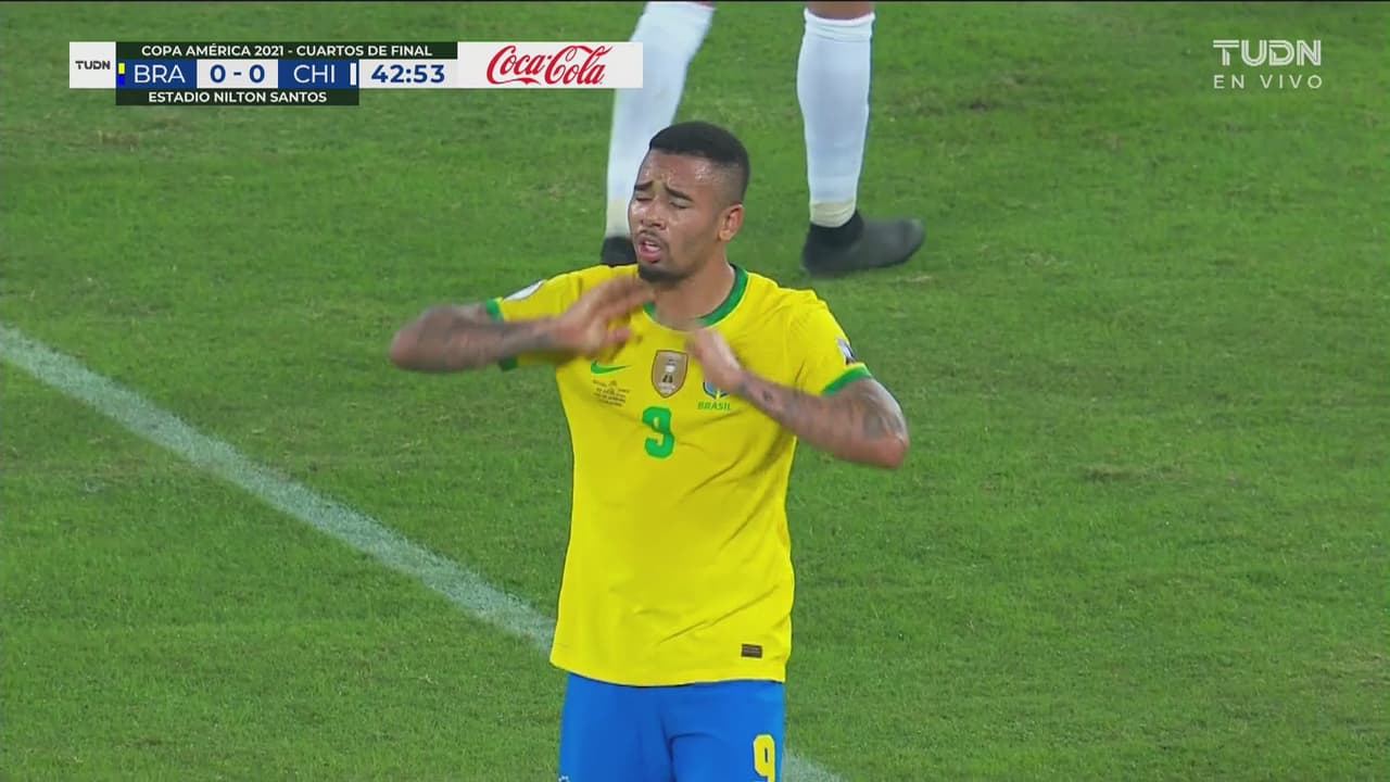 El delantero de Brasil se escapó con la gran asistencia de Neymar, pero el portero de Chile atajó al 42’.