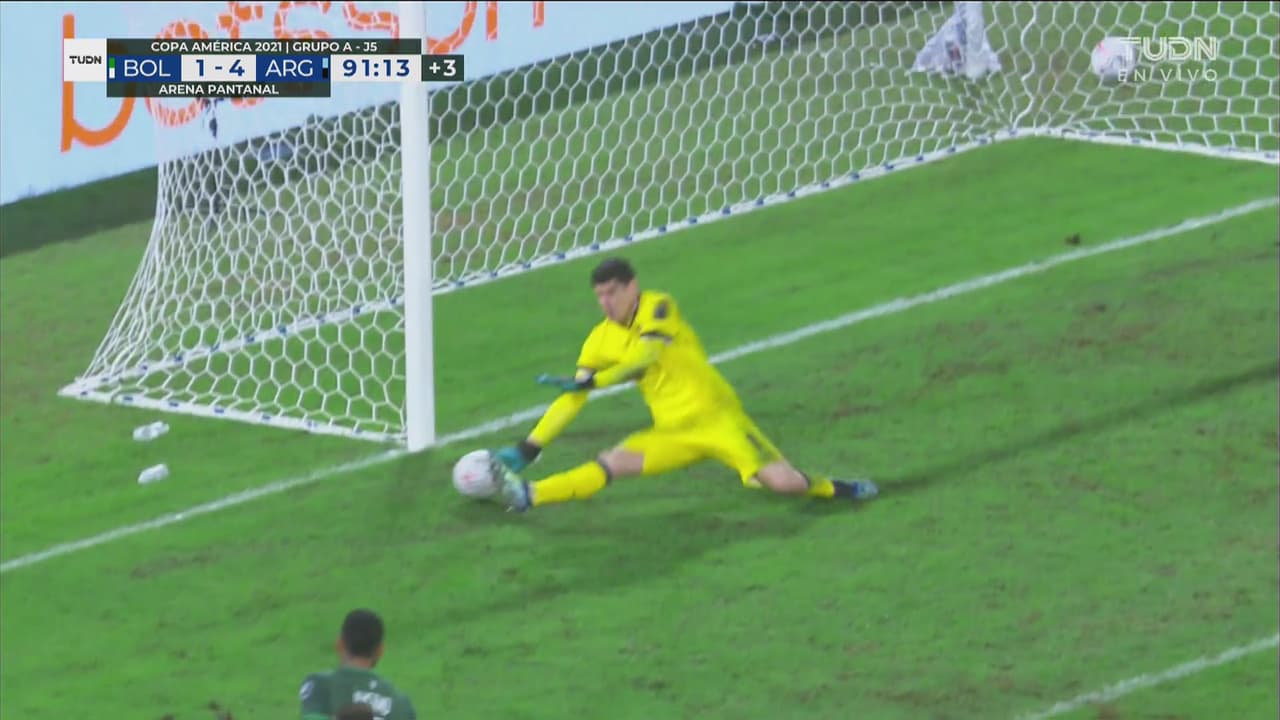 El arquero de Bolivia le tapó el zurdazo pegado al poste a Lionel al minuto 91’.