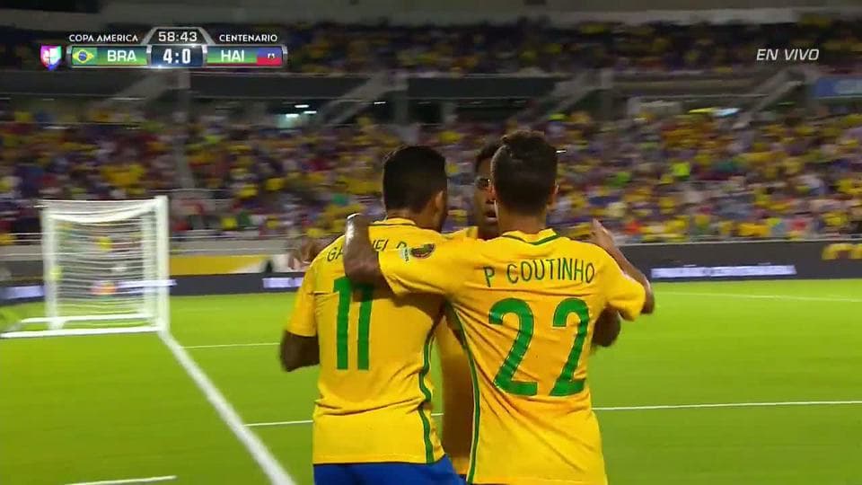 El volante del Liverpool inglés le pegó con potencia a primer poste dejando sin oportunidad al arquero Johny Placide para anotar el primer gol de Brasil en la Copa América Centenario ante la débil Haití.