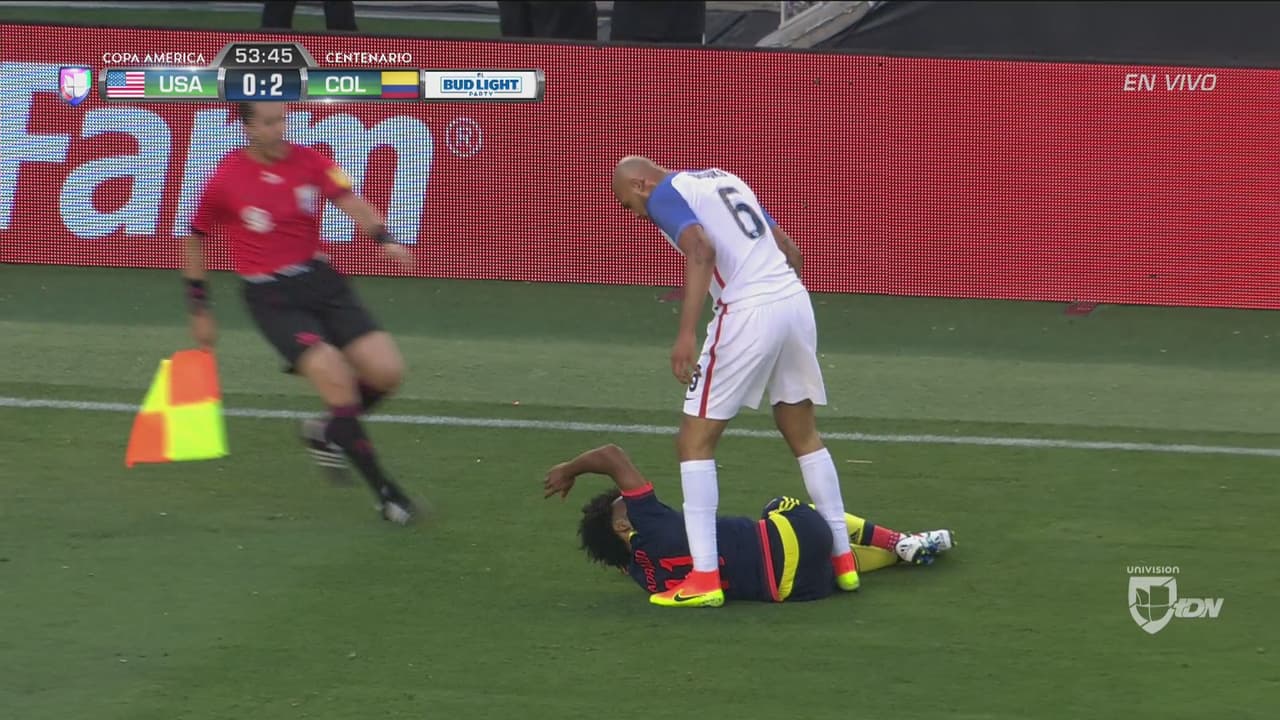 El defensor de Estados Unidos le reclamó al colombiano por exagerar la falta.