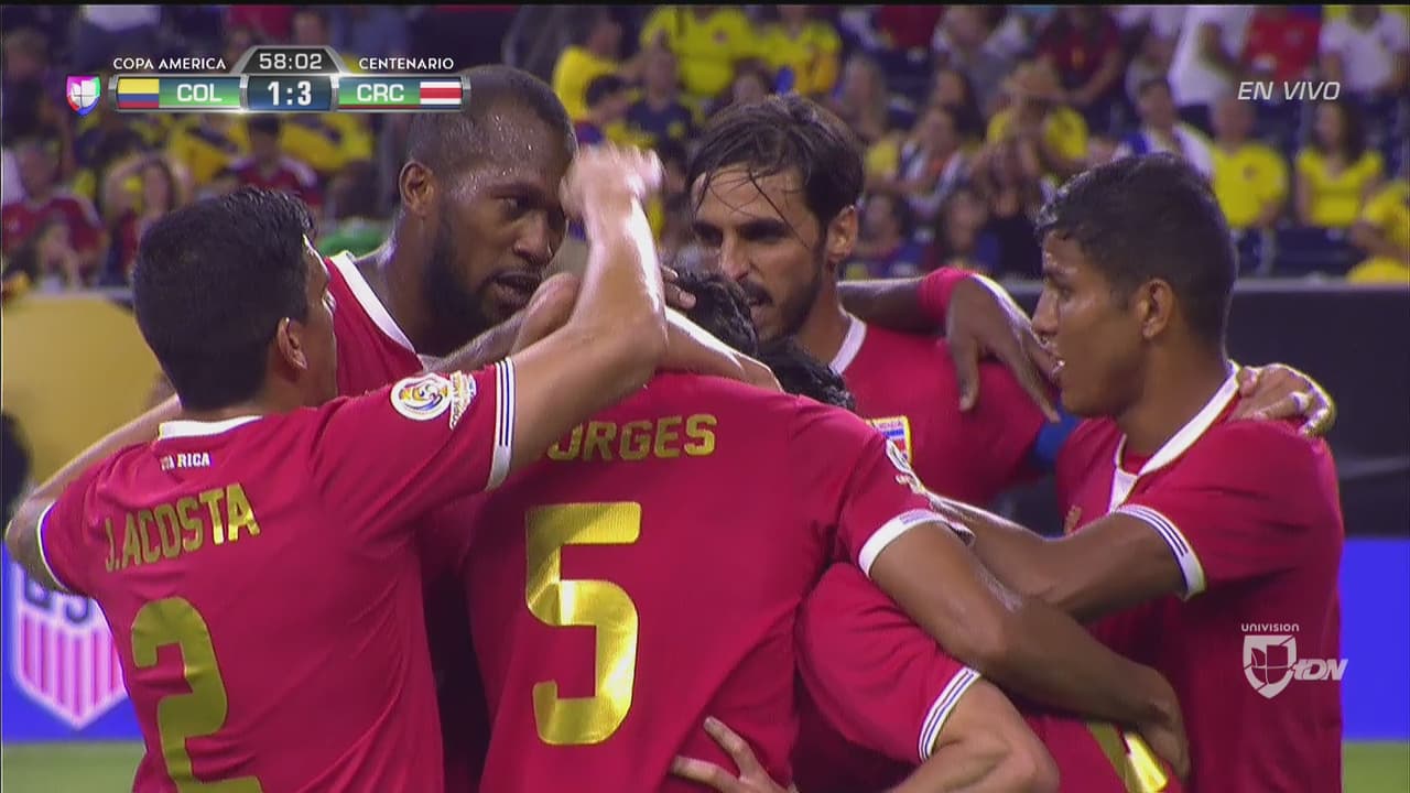 Tercer gol de Costa Rica ante Colombia en una buena jugada que remata Celso Borges con gran disparo.