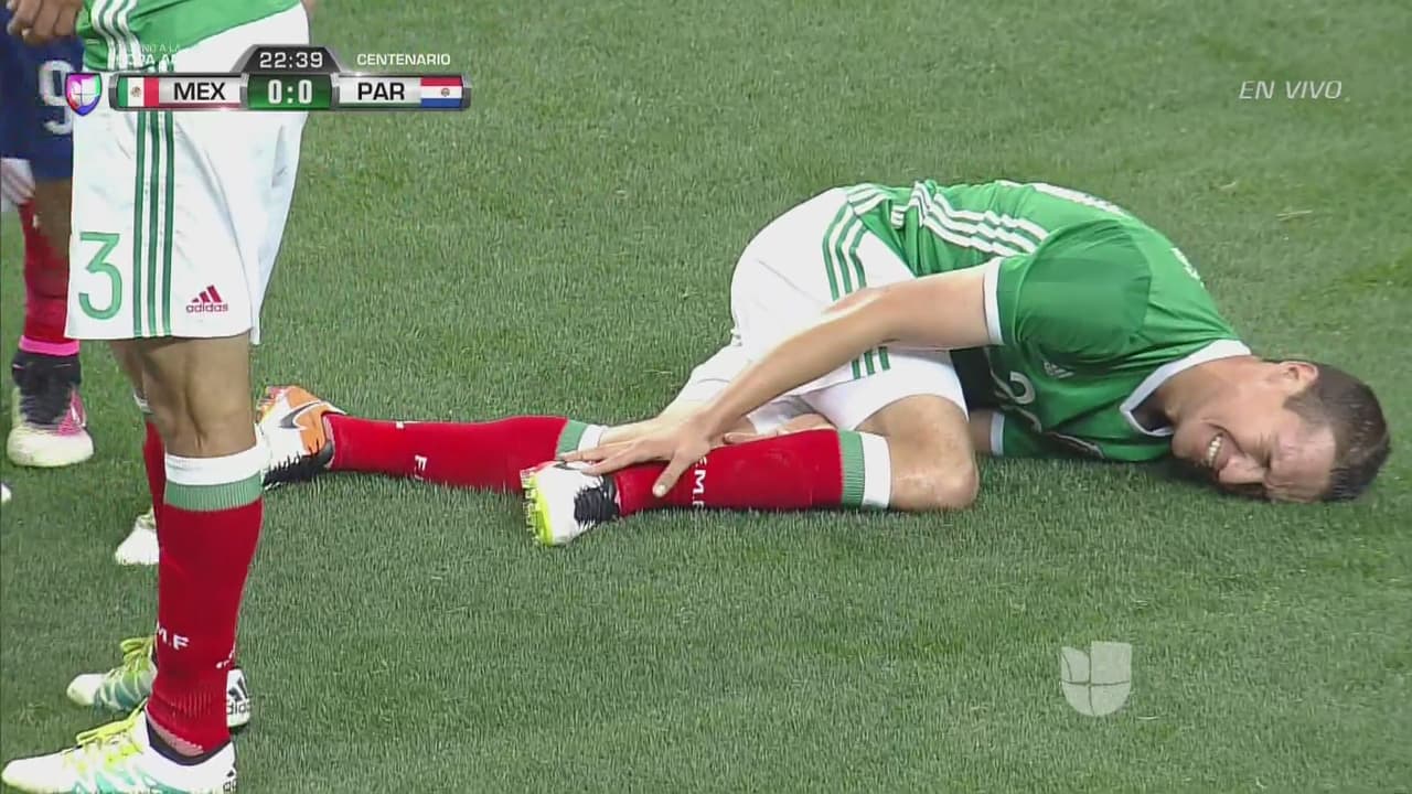 El mediocampista de Paraguay llegó tarde a la jugada y le dejó la pierna en el tobillo a Dueñas.