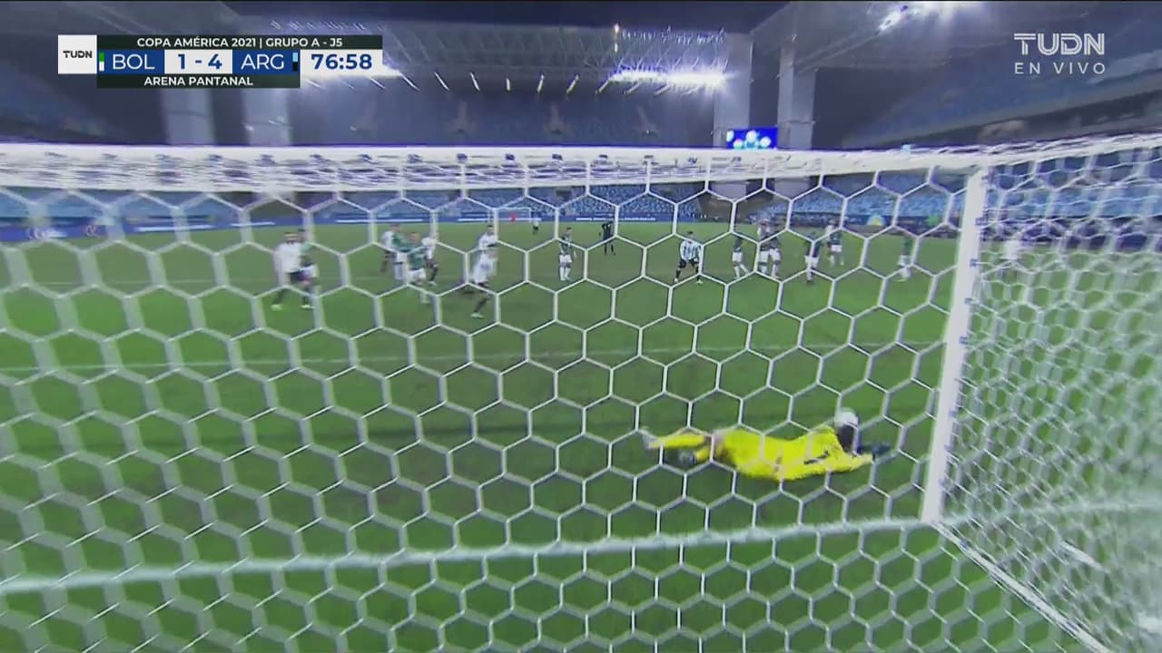 Lionel buscó la base del poste, pero llegó el portero y Lisandro no pudo en el cotraremate al 76’.