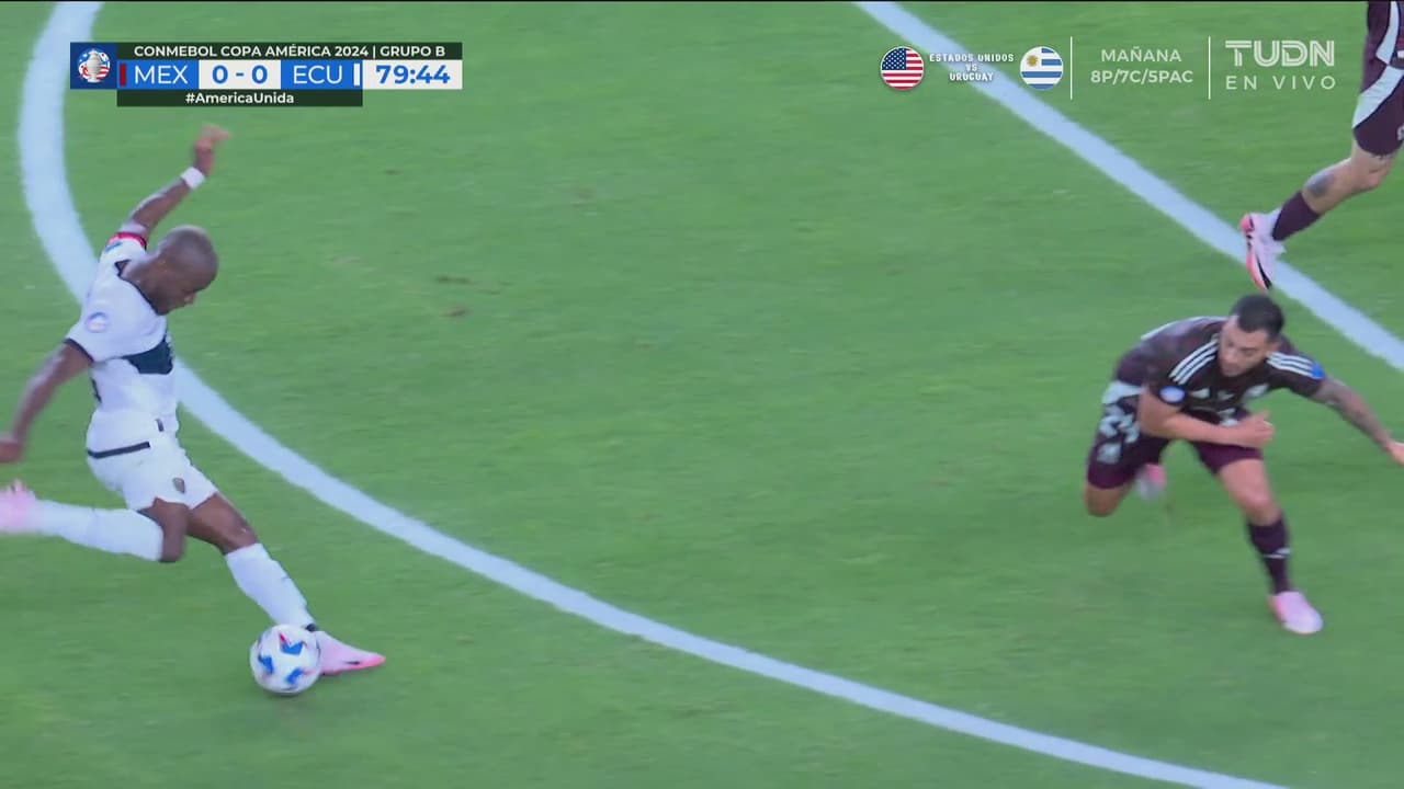 El rechace de la defensa mexicana le quedó a Enner que condujo y disparó a un lado del arco.