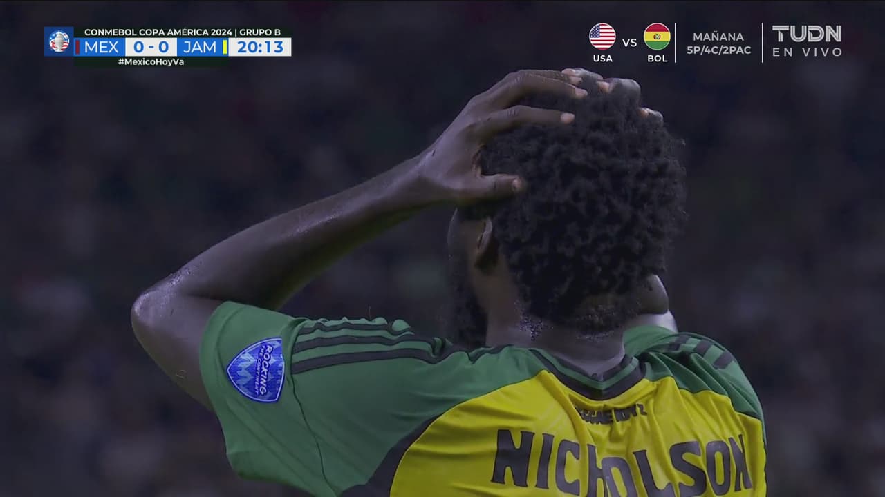 El centro peligroso fue al área mexicana, pero el delantero de Jamaica no pudo darle dirección de gol.