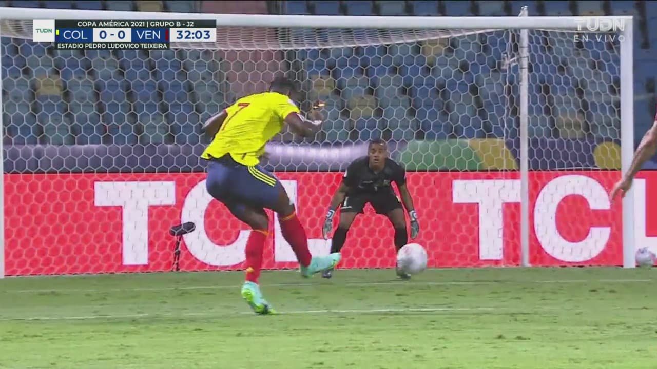 Primero es Zapata el que prueba a Faríñez y después Muriel toma el rebote y envía el balón a las nubes, al 31'.