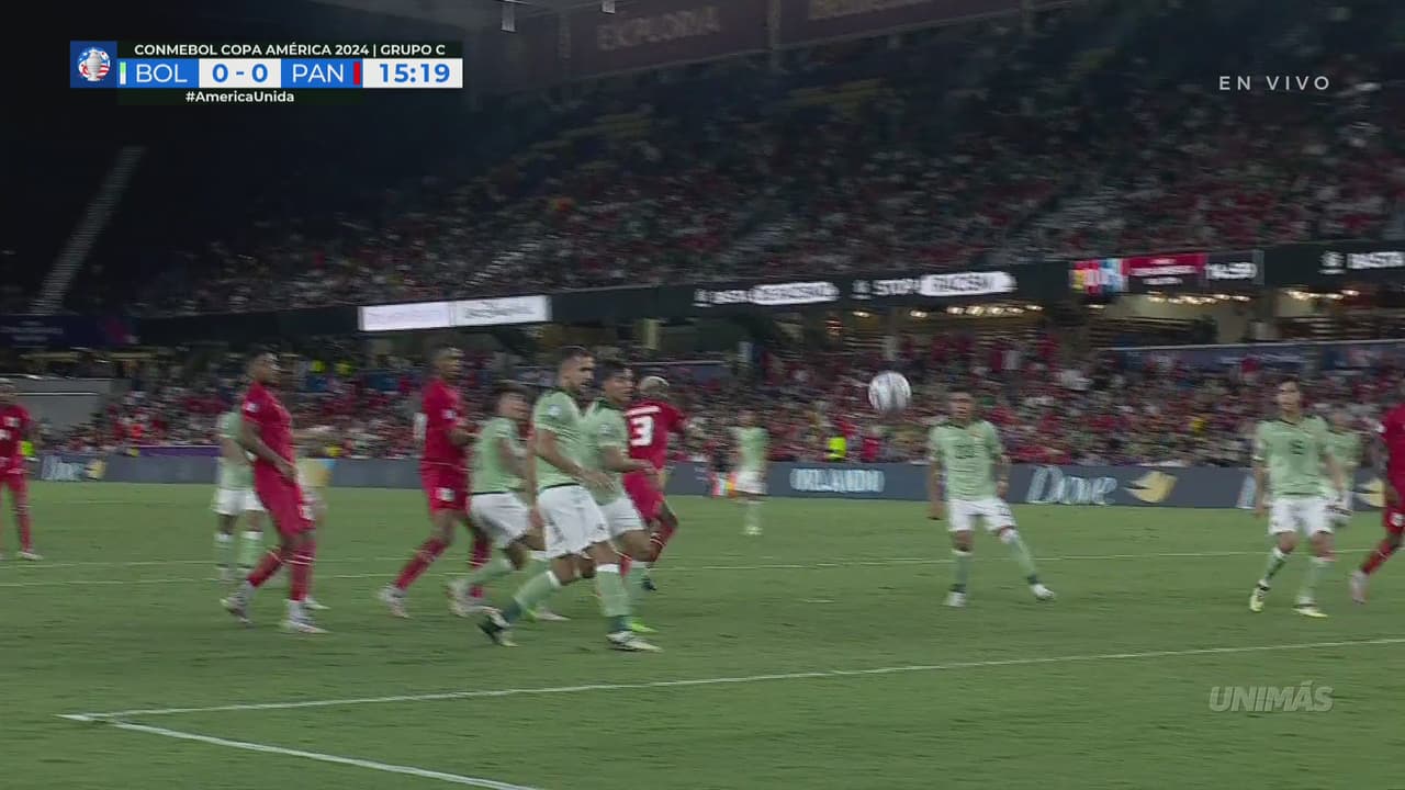 Tiro de Édgar Bárcenas que llega a los dominios de José Ángel quien se animó a buscar el gol, rematando chueco.
