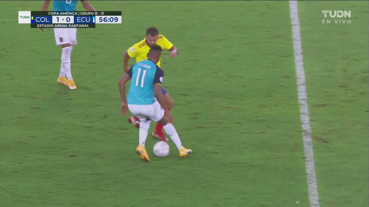 El volante de la selección Colombia sacó un túnel a lo Riquelme sobre Michael Estrada, volante de Ecuador.