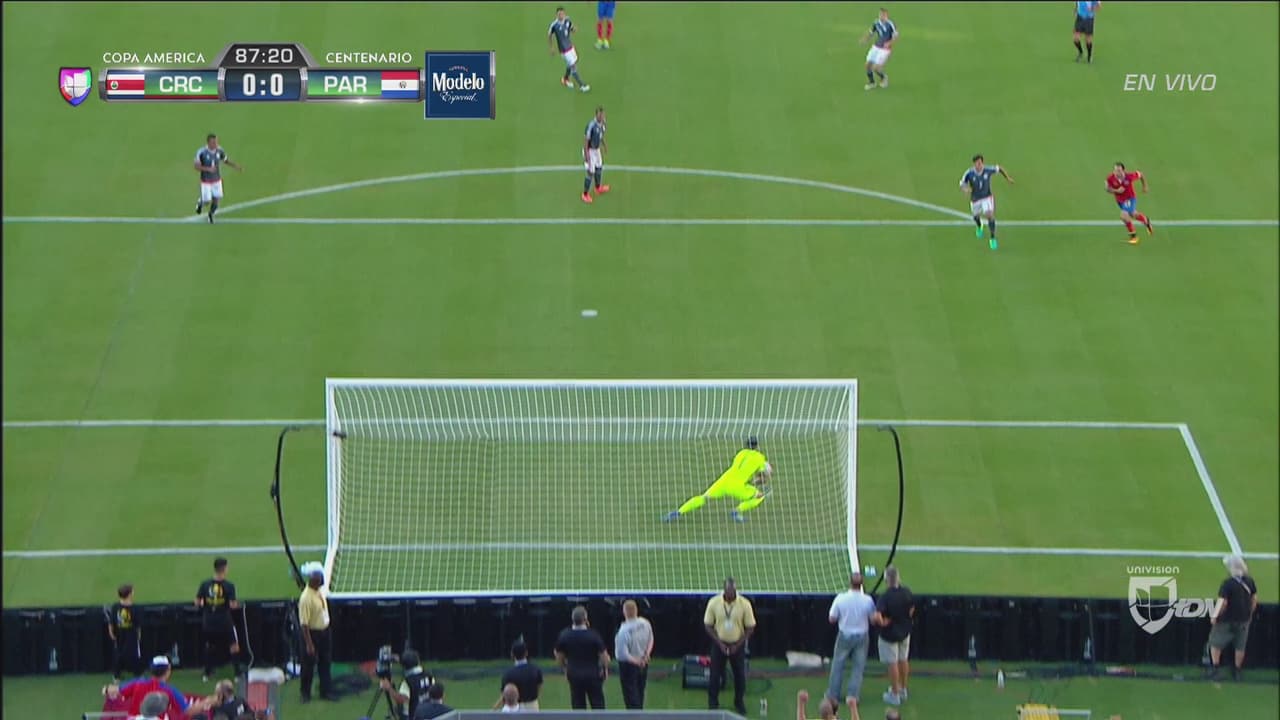 El mediocampista hace un tiro lejano y el arquero paraguayo ataja con dificultades.