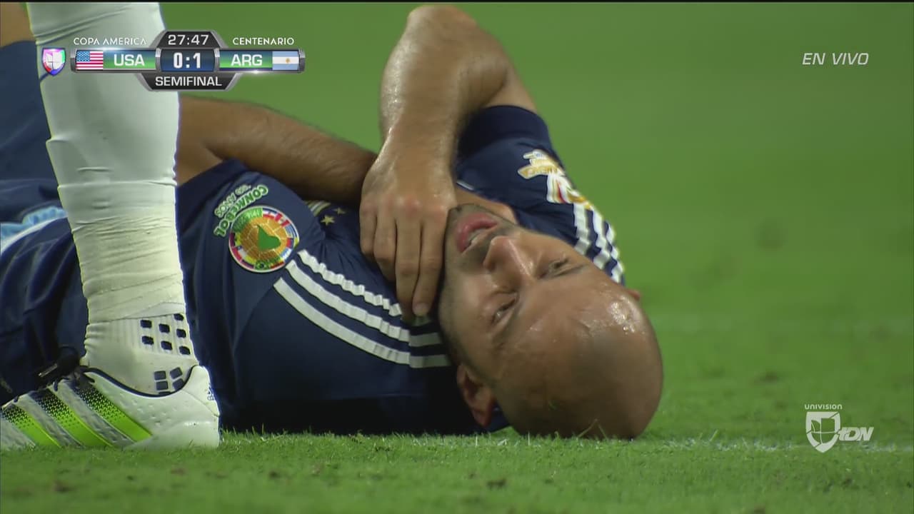 Clint Dempsey dejó a Mascherano sin respiración con un codazo al cuello, el árbitro le perdonó la tarjeta amarilla