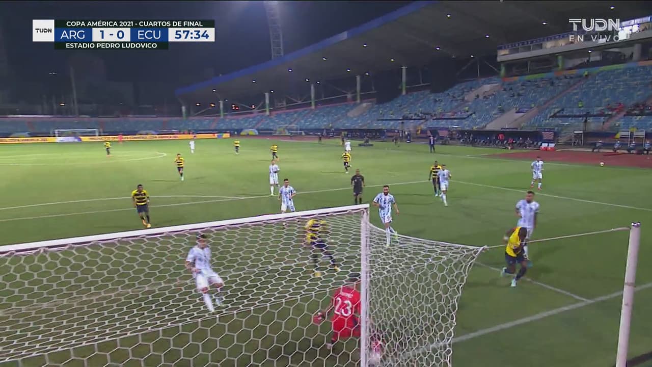 Llegada de Enner Valencia al área, disparó a primer palo, pero el portero de Argentina reaccionó al 58’.