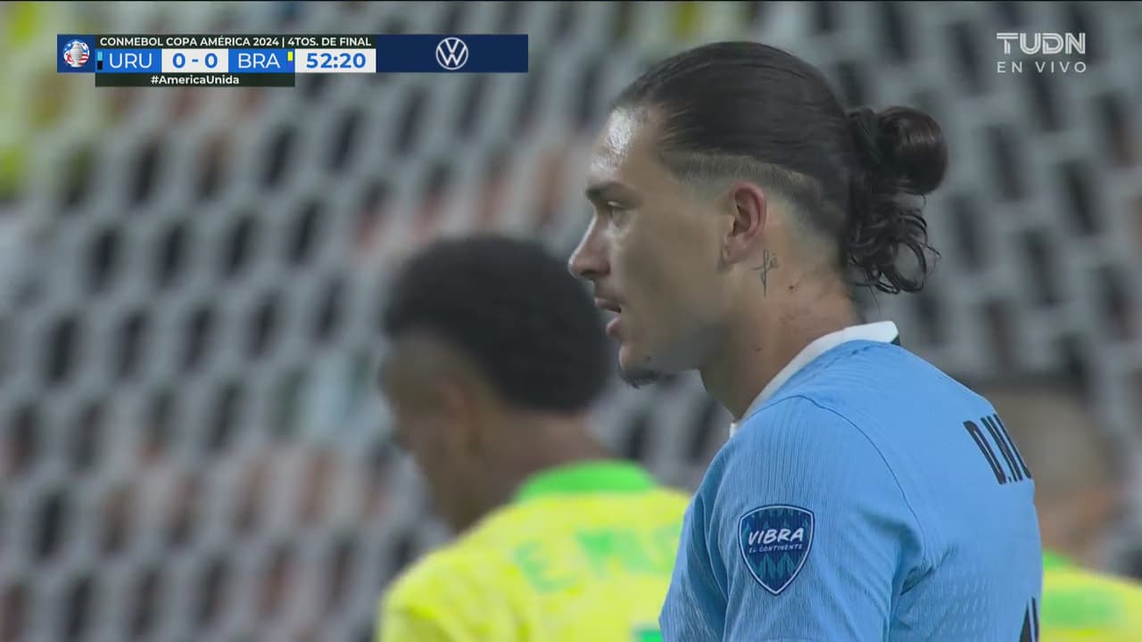 Uruguay se mete a zona prometida pero cuando Núñez quería el balón, el brasileño le mete el pecho, acción que fue revisada.