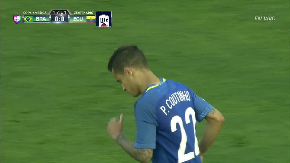 Disparo afuera de Philippe Coutinho Correia on June 4, 2016