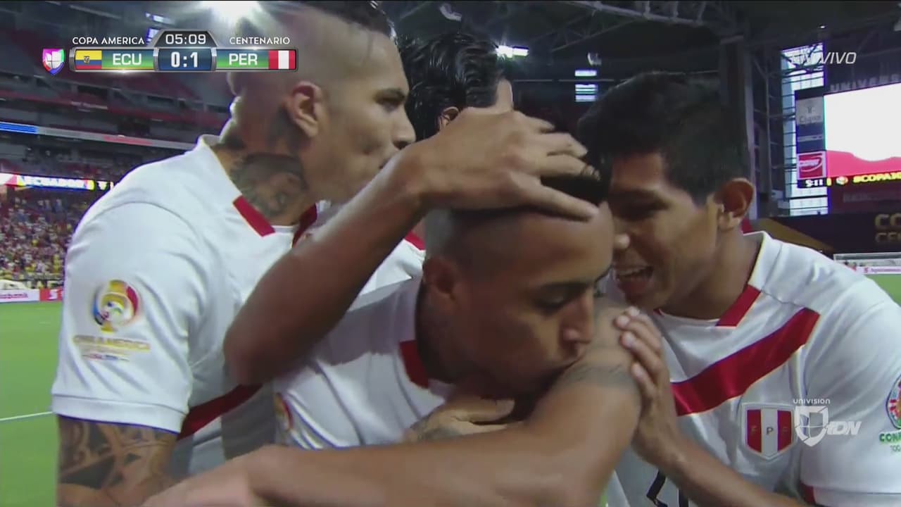 Ecuador no salía de su desconcierto, reflejado en una amonestación a Carlos Gruezo. Vino el cobro de la falta por parte de Renzo Revoredo, la controla Edison Flores y de media vuelta, con todo y la marca ecuatoriana, saca un disparo colocado para el 2 – 0 de Perú apenas a los 12 minutos de juego.