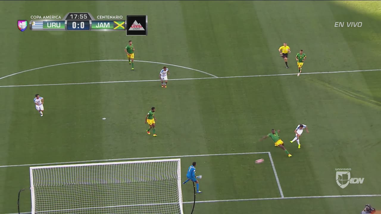 El delantero uruguayo no supo aprovechar el error de Andre Blake, portero de Jamaica.