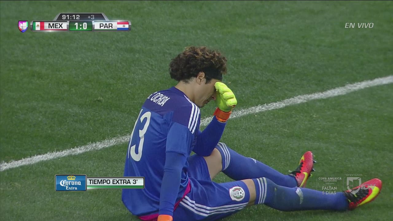 El arquero mexicano se lanza por un balón desviado y en el rebote le pega en el rostro.