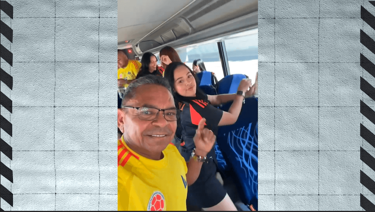 Mané Díaz desbordó alegría en un bus y festejaba cada paso del baile de una aficionada cafetalera ante la mirada molesta de su pareja.