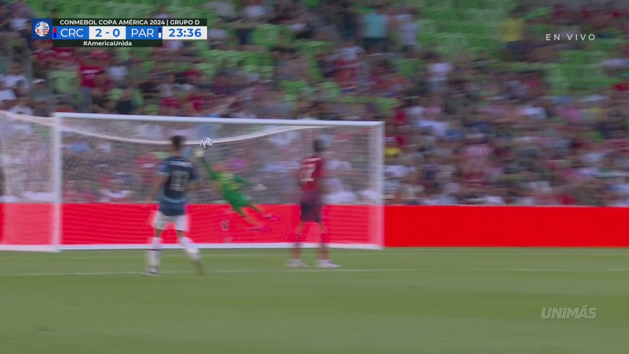 El paraguayo se animó a pegarle de larga distancia y la puso en el ángulo, pero el arquero tico metió el manotazo a tiempo.