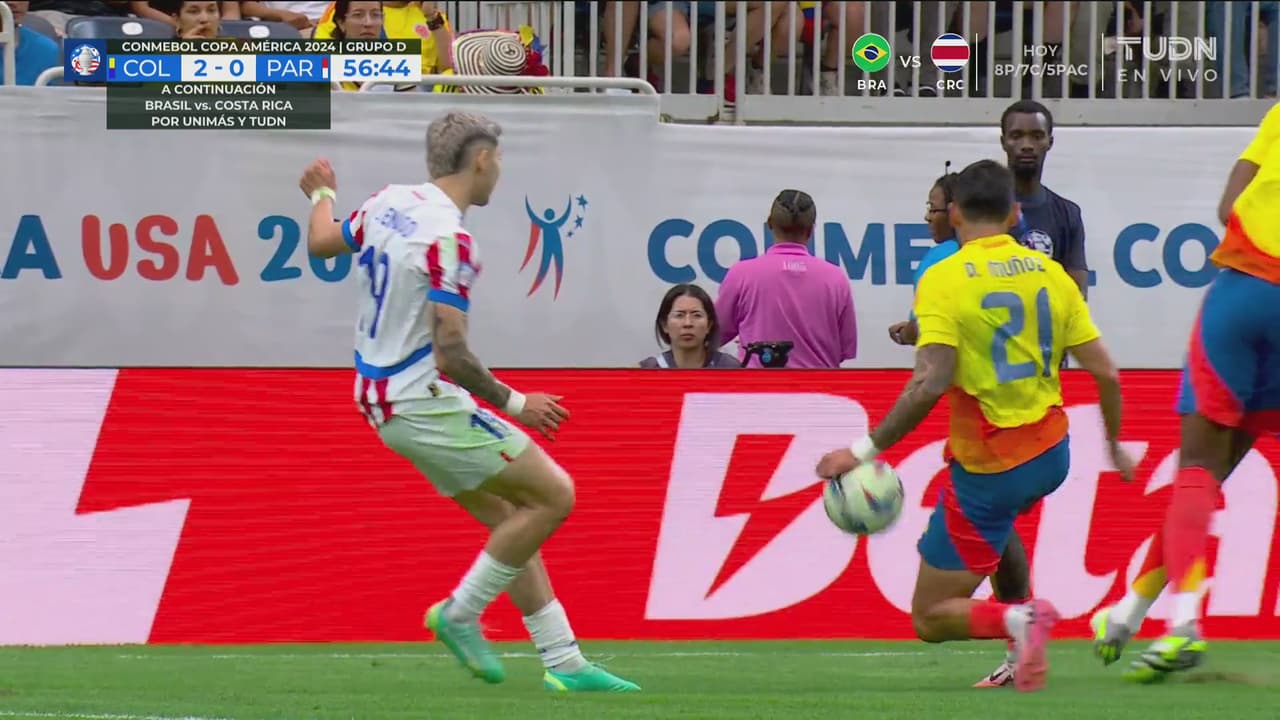 El futbolista paraguayo despejó la esférica que pegó en la mano a Daniel Muñoz, que no fue suficiente para marcarla.