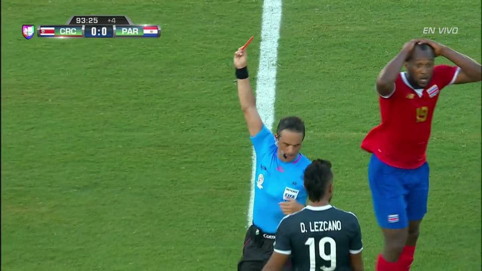 Expulsión!! El árbitro saca la roja directa a Kendall Jamaal Waston Manley on June 4, 2016