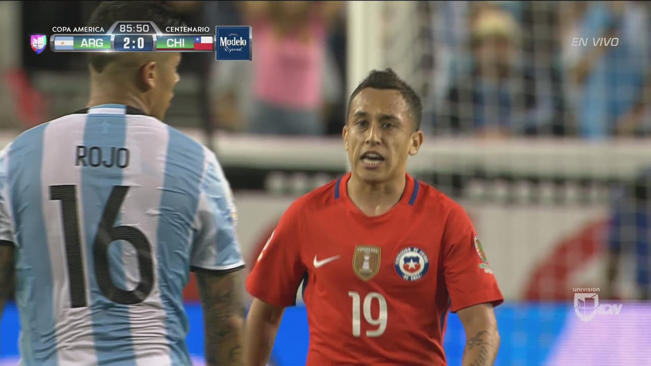 Fabián Orellana y Marcos Rojo se dicen de todo durante el partido Argentina – Chile