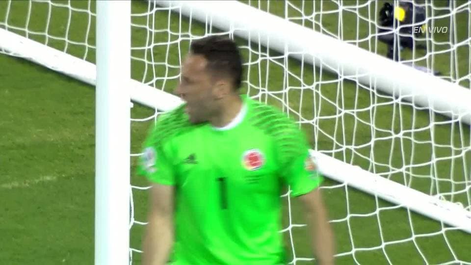 ¡Zapatazo de Arias que pega en la zaga y el Dibu recoge el rebote!
