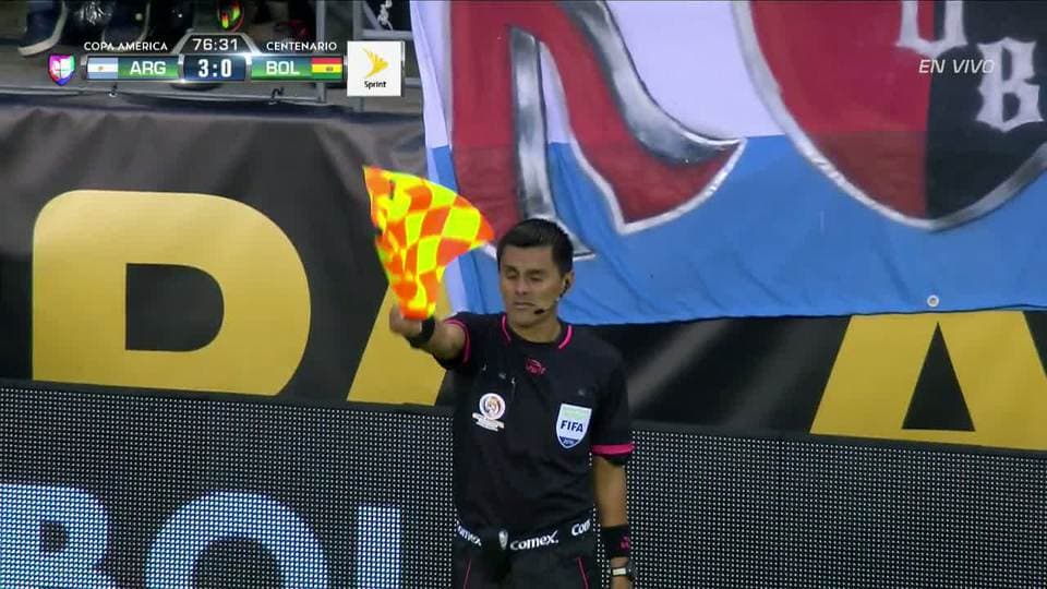 Fuera de juego de Lionel Andrés Messi El juez de línea levanta el banderín y anula la jugada on June 14, 2016