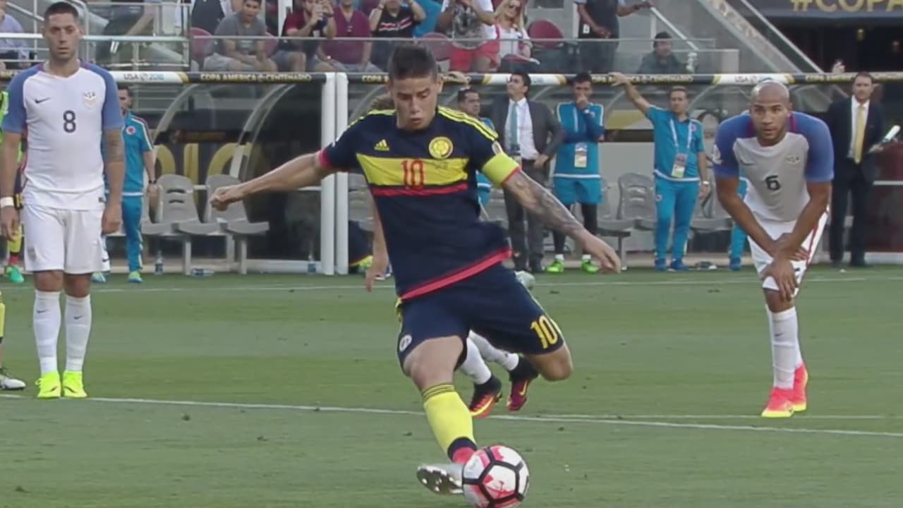 Antes del descanso, el mexicano Roberto García señaló penal por mano del lateral DeAndre Yedlin y James Rodríguez se encargó de engañar a Brad Guzan para poner el 2-0 en el marcador.