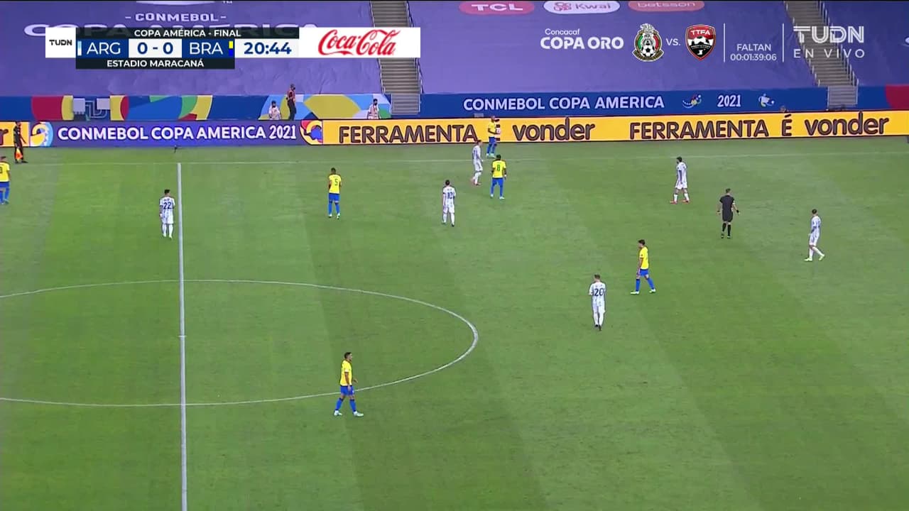 ¡Gol! Argentina 1| Brasil 0. Ángel Di María (Argentina) zurdazo desde el centro del área.