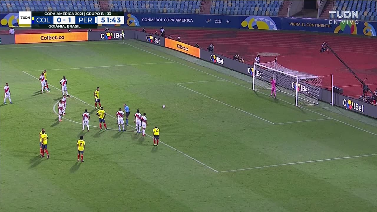 ¡Gol! Colombia 1| Perú 1. Miguel Borja (Colombia) convirtió el penalti Disparo con la derecha por el lado derecho de la portería.