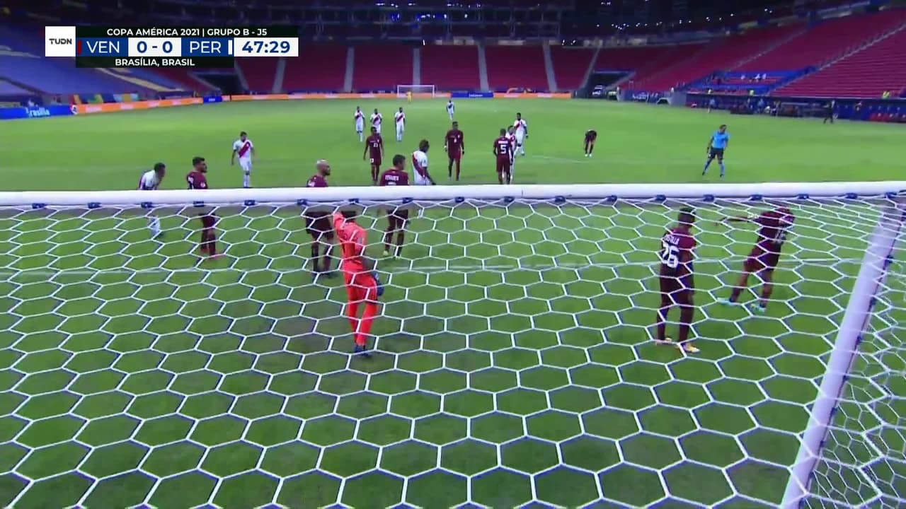 ¡Gol! Venezuela 0| Perú 1. André Carrillo (Perú) Disparo con la derecha desde muy cerca por arriba tras un saque de esquina.