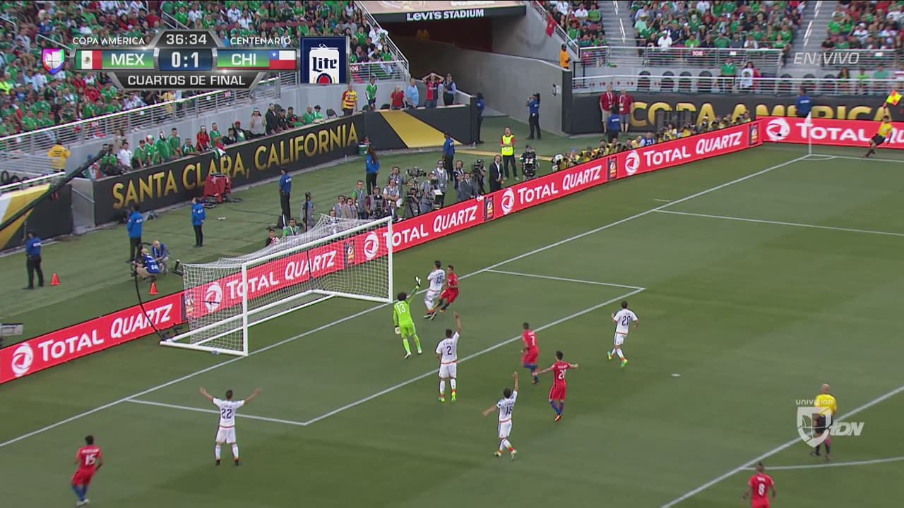 Vargas anota lo que pudo haber sido el 2-0 de Chile contra México, pero estaba fuera de juego.
