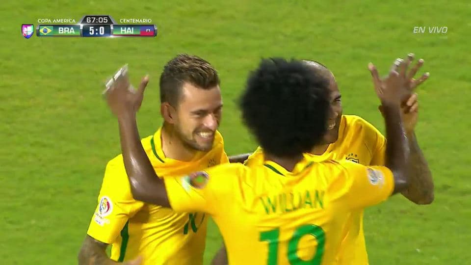 Gooool!!! Lucas Rafael Araujo Lima remata de cabeza y anota para Brasil on June 8, 2016