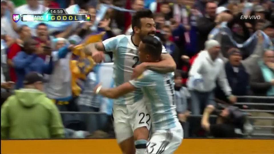 Goooolll!! Ezequiel Lavezzi mete el balón y marca para Argentina on June 14, 2016