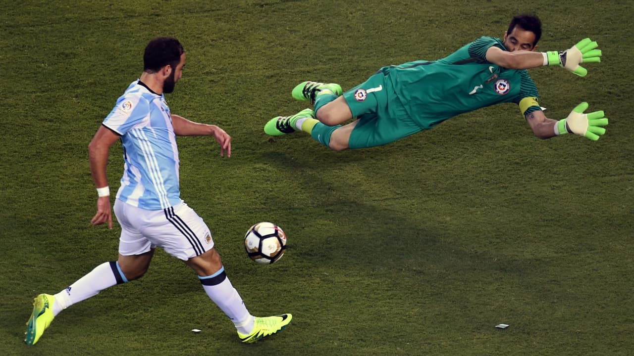 Error de la defensa y el ‘Pipita’ quedó solo ante el portero chileno, pero falló cuando más fácil la tenía, en la final de la Copa América Centenario