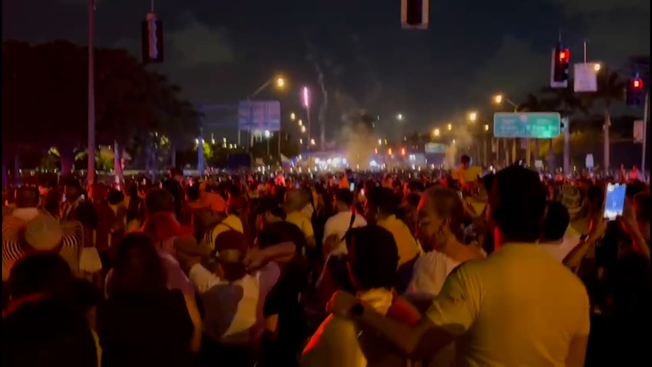 La fanaticada cafetalera celebró la noche previa a la Final de la Copa América 2024 con fuegos pirotécnicos y un fuerte dispositivo de seguridad.
