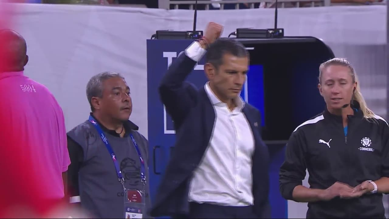 Así fue la reacción del estratega mexicano luego de que el VAR anuló el gol de Jamaica por fuera de juego.