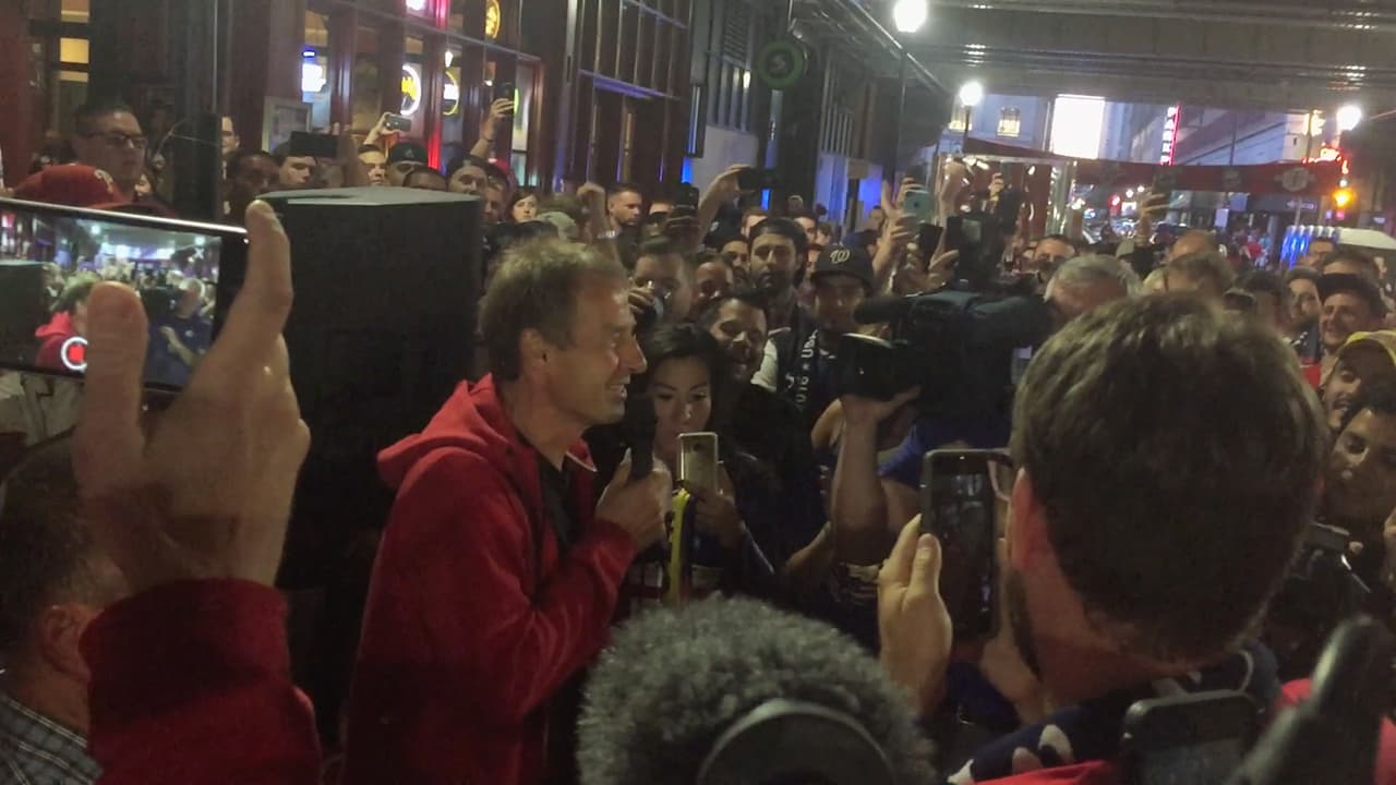 Jurgen Klinsmann makes a surprise visit at a pre game party in Philly