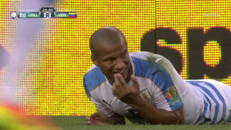 Lanzamiento magistral de tiro libre de Carlos Andrés Sánchez Arcosa que anota para Uruguay on June 9, 2016