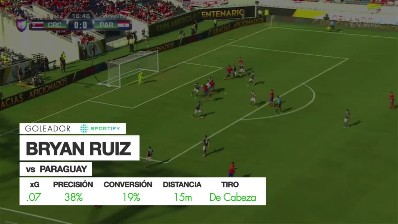 Las estadísticas del remate de cabeza de Bryan Ruiz ante Paraguay