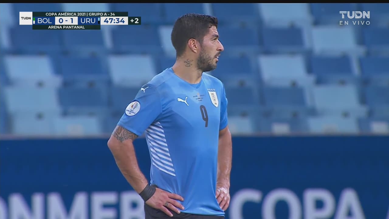 Luis Suárez luchó, remató y casi logra un gol de media cancha