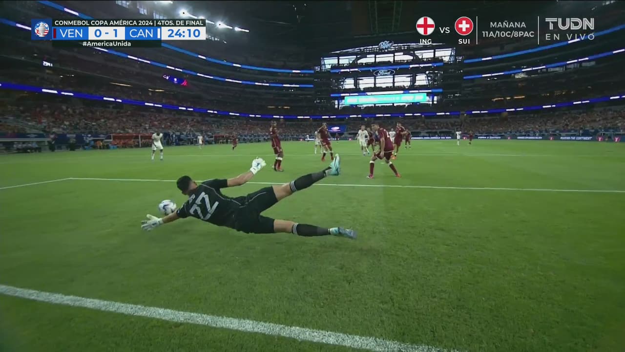 Venezuela sufre con la velocidad de los atacantes de Canadá y el volante ofensivo buscó ponerla pegada al poste, pero el arquero se lo negó.