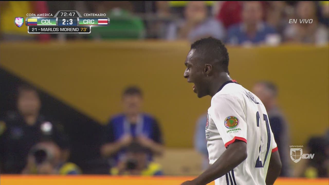 El segundo de Colombia ante Costa Rica llega en los pies de Marlos Moreno con un fuerte disparo tras una buena jugada de los cafeteros.