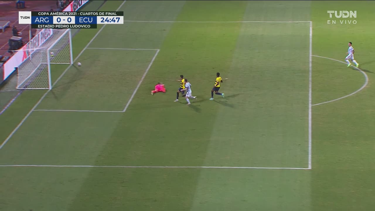 La Albiceleste dominó desde el inicio. Lautaro Martínez se quedó muy cerca de anotar tras quitarse al arquero pero Arboleda salvó en la línea y posteriormente Lionel Messi estrelló una pelota en el poste después de un mano a mano.
