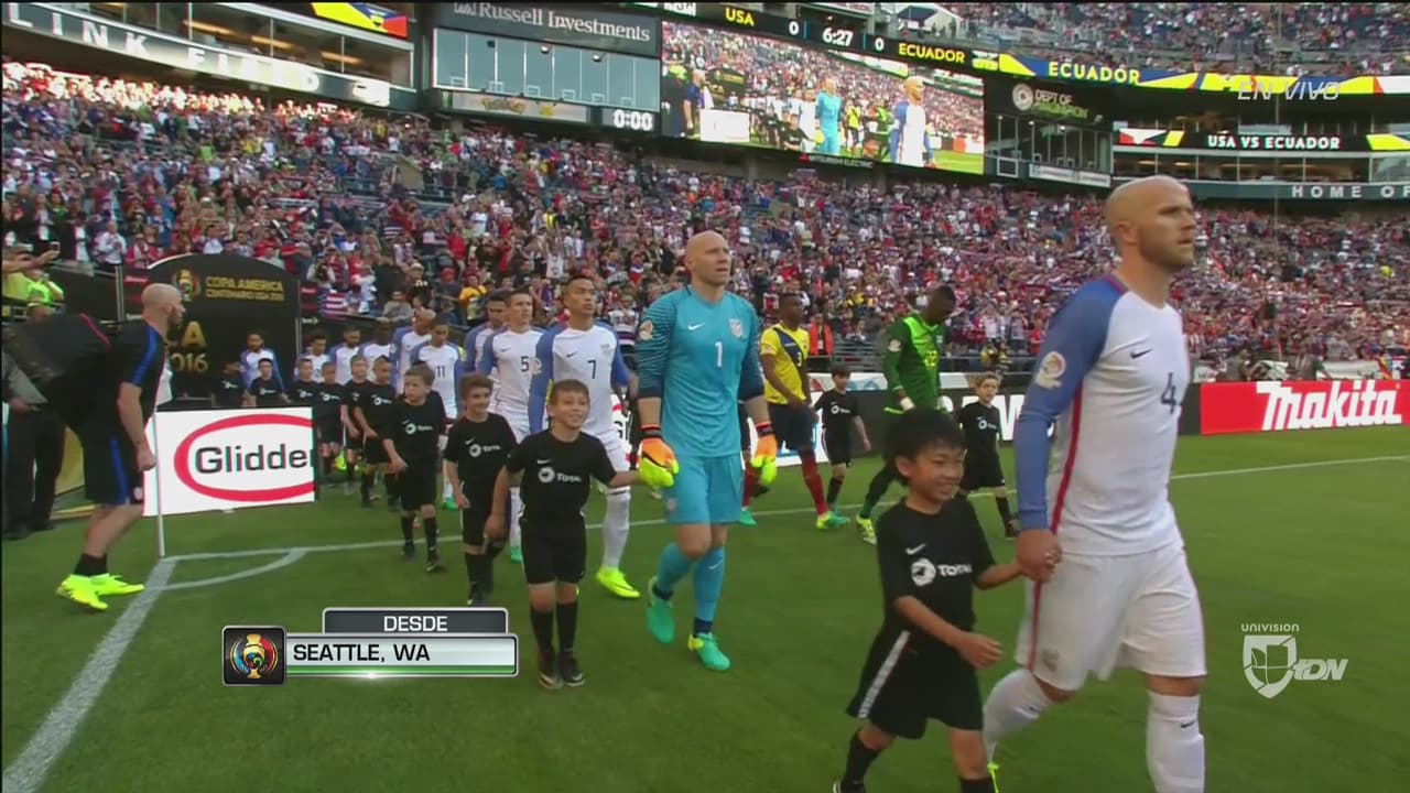 Minuto 0: Entran los equipos al campo. Bradle y Ayoví lideran los grupos.