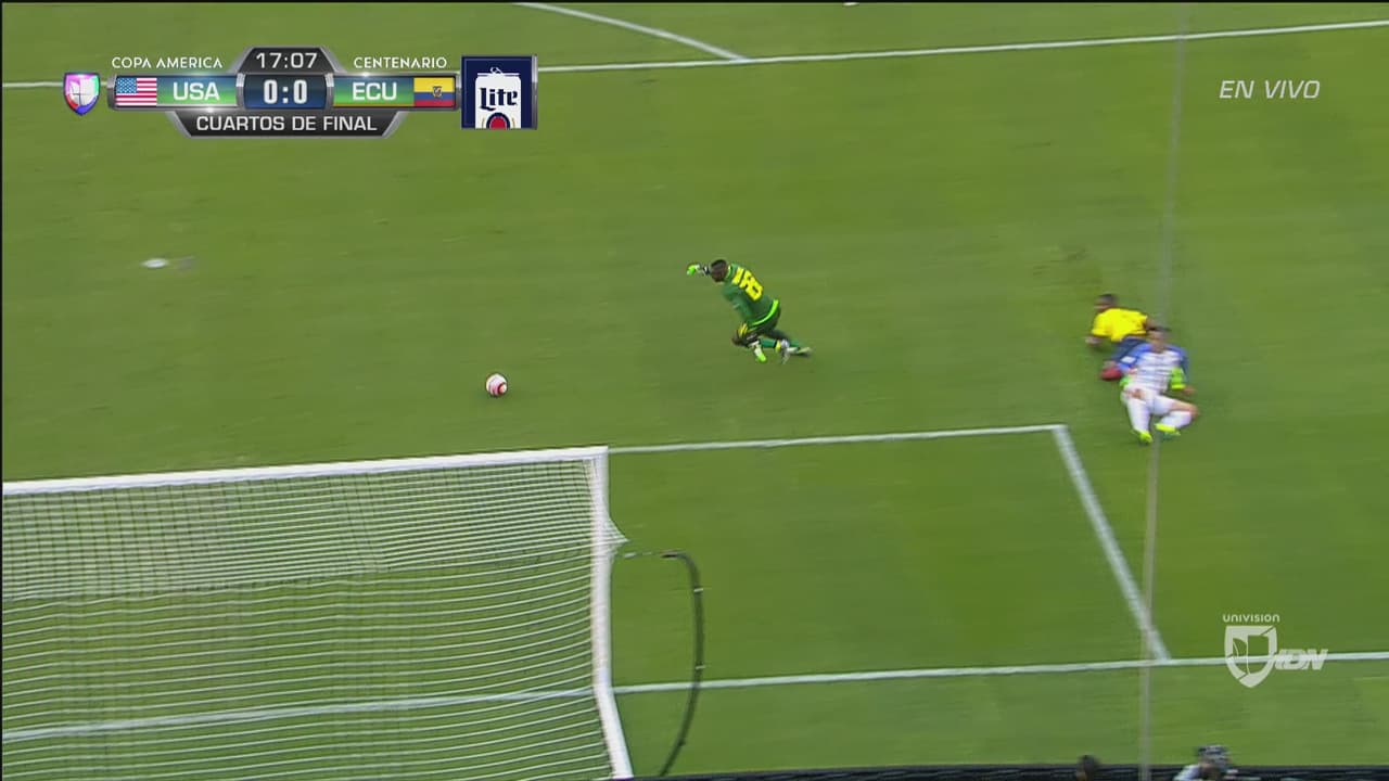 Pase preciso de Michael Bradley, pero el delantero estadounidense no llegó con fuerza al balón.