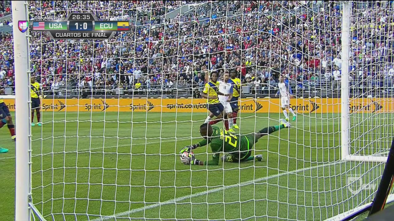 Su remate rastrero logró ser controlado por el portero ecuatoriano Alexánder Domínguez.