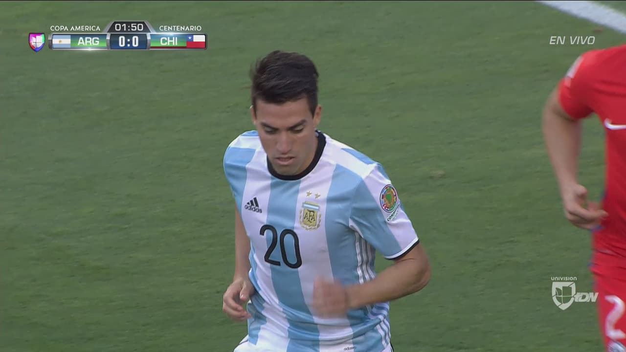 Apenas al minuto 2, Nicolás Gaitán se rebuscó este cabezazo y obligó a la volada de Claudio Bravo.