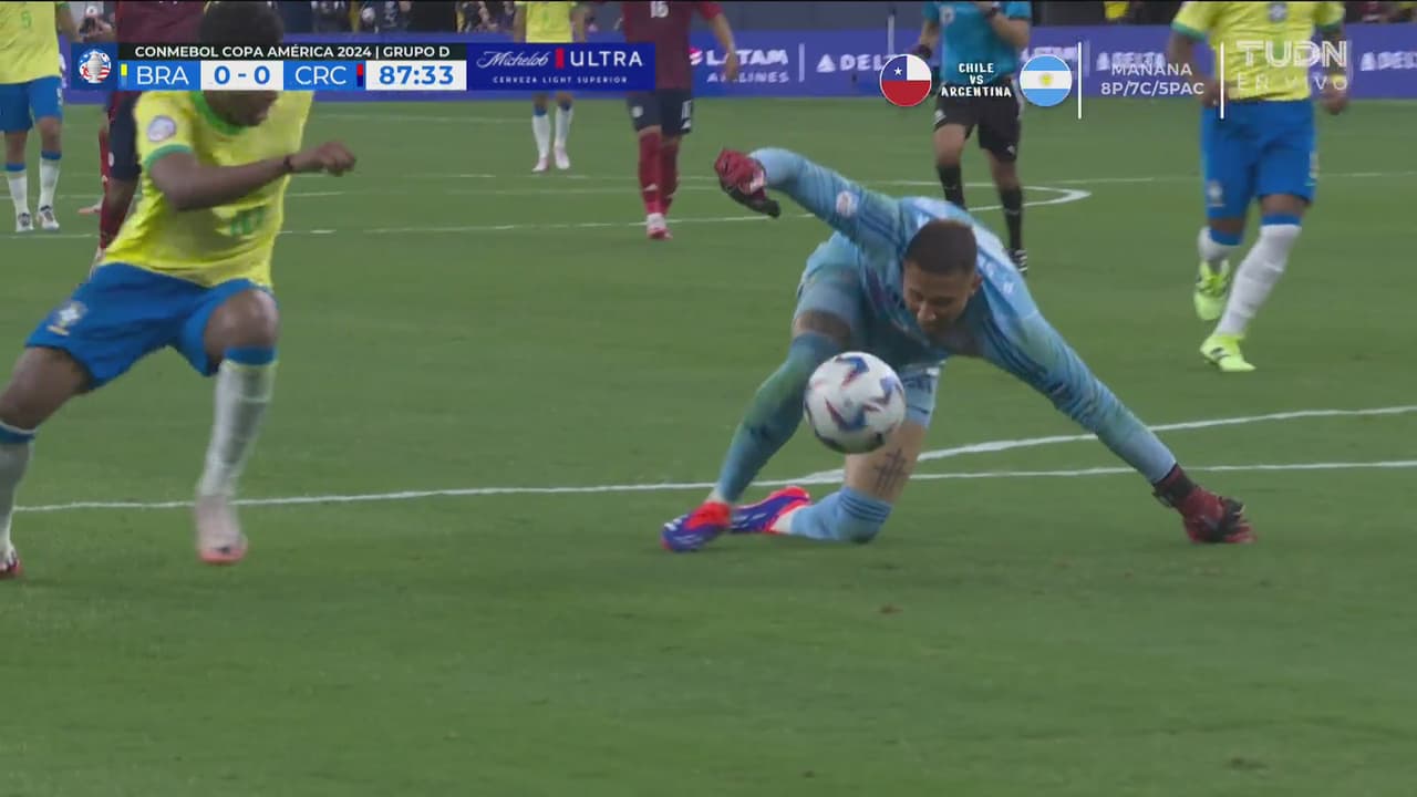 El arquero de Costa Rica se equivocó al ir al choque con el delantero, pero la defensa complementó.