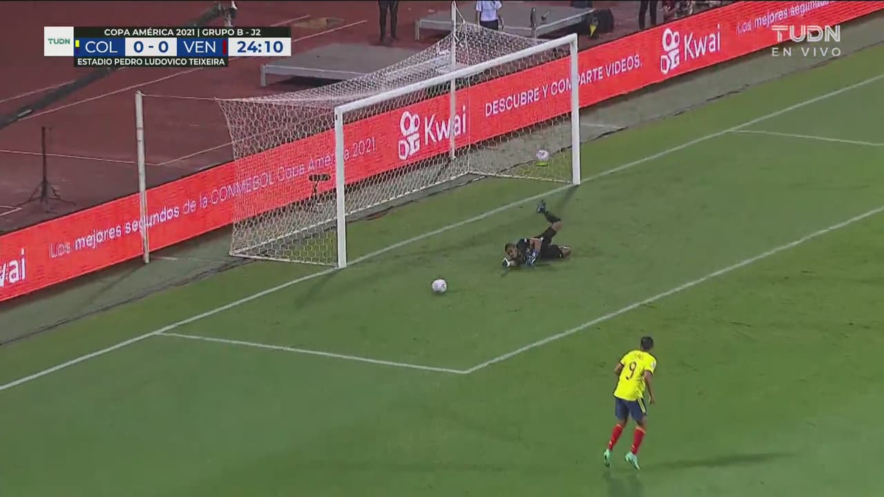 El '10' colombiano saca disparo desde el borde del área y el arquero desvía al tiro de esquina, al 23'.
